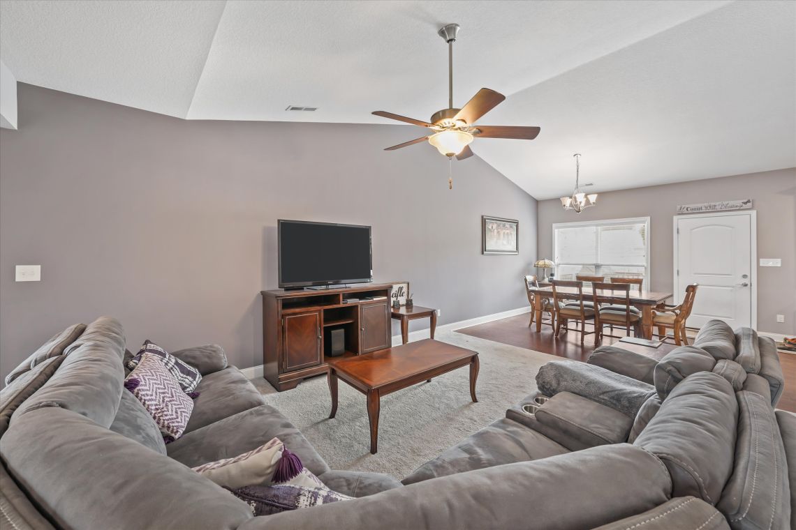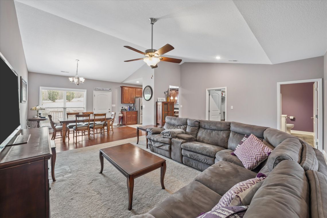This thoughtfully designed, one-level lake-view home offers approximately 2,629 square feet of beautifully planned living space, featuring 3 bedrooms, 2.5 bathrooms, a dedicated office, and a spacious bonus room. Cathedral ceilings and an open floor plan create an inviting main living area, ideal for both everyday living and entertaining.